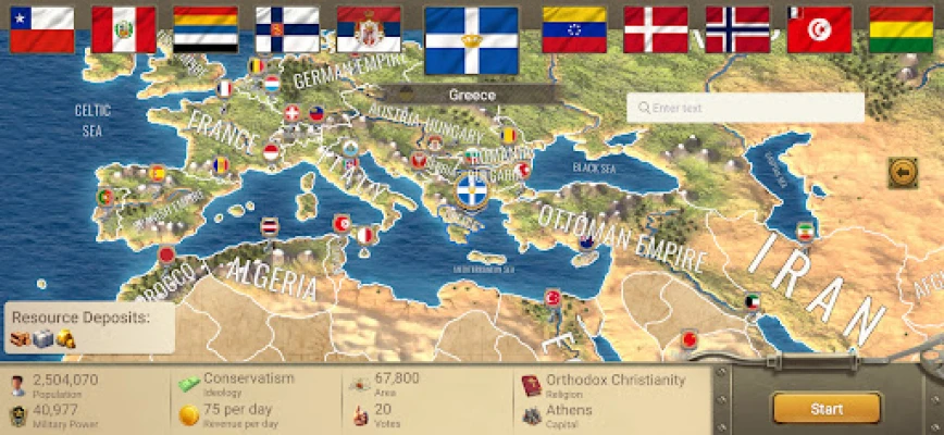 Βυθιστείτε σε ένα παιχνίδι παγκόσμιας στρατηγικής. Ηγηθείτε ενός έθνους προς την κυριαρχία, αναπτύσσοντας την οικονομία και τους πόρους. Δημιουργήστε ισχυρό στρατό, χρησιμοποιήστε διπλωματία και εμπορικές συμφωνίες για να αντιμετωπίσετε προκλήσεις και να ενισχύσετε τη θέση σας παγκοσμίως.