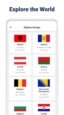 Μετατρέψτε κάθε στιγμή χαλάρωσης σε μια ευκαιρία να διευρύνετε τους ορίζοντές σας και να εμβαθύνετε στην παγκόσμια γεωγραφία. Κάθε σωστή απάντηση στα κουίζ του Flag Quiz: Countries & Capitals ενισχύει την κατανόησή σας για την απίστευτη ποικιλομορφία των συμβόλων που εκπροσωπούν έθνη από κάθε γωνιά του πλανήτη. Είναι κάτι πολύ περισσότερο από ένα απλό παιχνίδι αναγνώρισης σημαιών – είναι ένα δυναμικό εκπαιδευτικό εργαλείο, το οποίο λειτουργεί ως το διαβατήριό σας για να γίνετε ένας πιο ενημερωμένος, συνειδητοποιημένος και πραγματικά παγκόσμιος πολίτης.