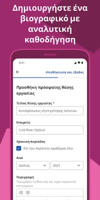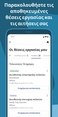 Η Indeed συγκεντρώνει ένα απέραντο σύμπαν προοπτικών απασχόλησης, συμπεριλαμβανομένων όχι μόνο των δικών της καταχωρίσεων αλλά και ευκαιριών από ολόκληρο τον ιστό, συγκεντρώνοντάς τες σε μία ισχυρή πλατφόρμα. Ανακαλύψτε ρόλους απόλυτα εναρμονισμένους με τις φιλοδοξίες και την επαγγελματική σας πορεία μέσω έξυπνων προτάσεων. Δημιουργήστε μια εντυπωσιακή παρουσία με τη δυνατότητα να ανεβάσετε το υπάρχον βιογραφικό σας ή να αξιοποιήσετε τον διαισθητικό δημιουργό βιογραφικών της Indeed. Απλοποιήστε τις αιτήσεις σας χρησιμοποιώντας το αποθηκευμένο σας προφίλ, αποφεύγοντας επαναλαμβανόμενες καταχωρήσεις και επιταχύνοντας το ταξίδι σας προς νέα ξεκινήματα. Παρακολουθήστε την πρόοδό σας αβίαστα, λαμβάνοντας ειδοποιήσεις τη στιγμή που οι εργοδότες ασχολούνται με τις υποβολές σας μέσω της Indeed.