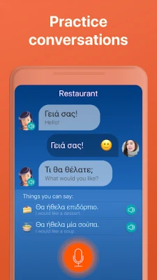 Μάθε ελληνικά με το Mondly! Καθημερινή εξάσκηση 5 λεπτών για να μάθετε βασικές λέξεις και φράσεις για συζήτηση. Περιλαμβάνει μαθήματα γραμματικής και είναι ιδανικό για όλες τις ηλικίες, ακόμα και για παιδιά.