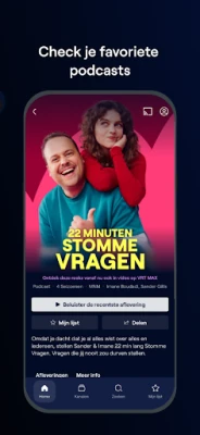 Πέρα από τις τελευταίες εξελίξεις, το VRT MAX σας ταξιδεύει πίσω στον χρόνο με ένα πλούσιο και εκτεταμένο αρχείο, ιδανικό για όσους αναζητούν μια δόση νοσταλγίας ή θέλουν να ξαναζήσουν αγαπημένες στιγμές. Μην χάσετε ούτε ένα επεισόδιο του "Thuis" και γνωρίστε σε βάθος τους αγαπημένους σας χαρακτήρες, ενώ οι φίλοι των ντοκιμαντέρ θα βρουν ατελείωτη έμπνευση μέσα από τις καλύτερες παραγωγές. Για τους μικρούς μας φίλους, η ζώνη Ketnet προσφέρει αμέτρητες ώρες ασφαλούς και διασκεδαστικής ψυχαγωγίας. Επιπλέον, μπορείτε να ακούτε και να παρακολουθείτε ζωντανά τον ραδιοφωνικό σταθμό και όλες τις ροές μας, καθώς και να εξερευνήσετε μια μεγάλη ποικιλία podcasts που καλύπτουν κάθε ενδιαφέρον.